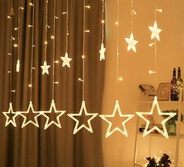 ⭐ Easy to use : 12 Stars(2 sizes), total 138pcs LED curtain string lights, Low voltage and ul Listed power supply, directly plug in and unplug for power on and off
