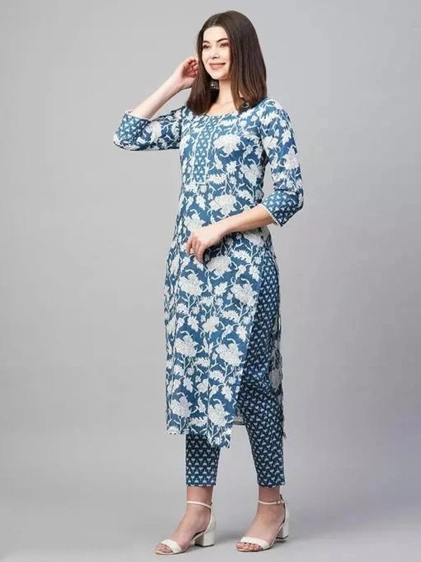 Name : Anni Designer Women's Cotton Blend Blue Straight Printed Kurta with Trouser