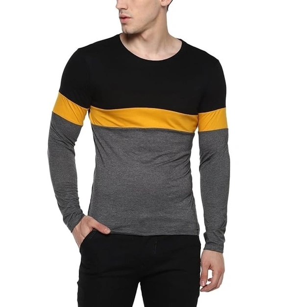 Black, Yellow, Grey Round Neck Full Sleeve Cotton T-Shirt