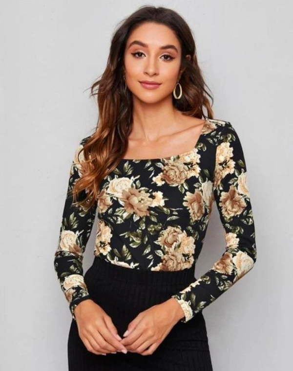 Casual Polyester Blend Square Neck And Long Sleeves Stylish Printed Top (23"Inches)