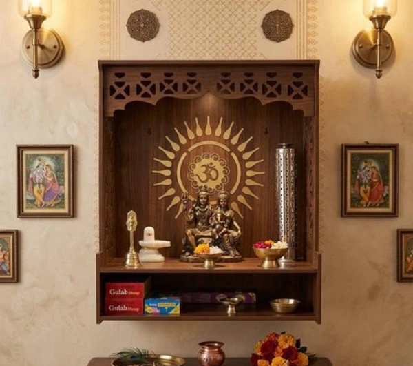 Transform your home into a serene sanctuary with the Mounted Wooden Temple, a masterpiece of craftsmanship that blends traditional design with modern functionality. Perfect for your pooja rituals and home decor, this big-sized wooden temple is thoughtfully designed to create a sacred space in your home. Featuring a built-in storage cabinet and an elegant LED spotlight, this temple is as practical as it is beautiful.