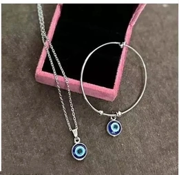 Evil Eye Bracelet and Pendant with Chain. Natural Blue Evil Eye Pendant Protect You From Bad Eyes For Boys and Girls.