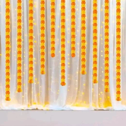 Enhance The Beauty And Sanctity Of Your Ganesh Chaturthi Celebrations With Our All-Inclusive Ganpati Decoration Set. This Thoughtfully Crafted Set Includes A Pristine White Net Curtain Cloth Backdrop And A Set Of 2 Durable Hooks, Along With Exquisitely Designed Artificial Marigold Flowers, Providing You With Everything You Need To Create A Mesmerizing Backdrop For Your Worship Area.The White Net Curtain Cloth Backdrop Serves As A Perfect Canvas For Your Ganpati Idol, Lending An Elegant Touch To The Overall Ambiance. The Backdrop Not Only Adds A Touch Of Divinity To Your Home But Also Provides A Serene And Sacred Environment For Your Prayers And Offerings. Setting Up The Backdrop Is A Breeze With The Two Hooks Included In The Combo. These Hooks Are Designed To Be Easy To Install And Will Securely Hold The Curtain In Place, Allowing You To Focus On The Meaningful Moments Of The Celebration. To Further Elevate The Festive Atmosphere, We Have Included Meticulously Crafted Artificial Marigold Flowers. These Lifelike Flowers Not Only Add Vibrant Hues Of Orange And Yellow But Also Symbolize Purity And Devotion, Making Them The Perfect Complement To The Ganesh Chaturthi Festivities. The Entire Decoration Set Is Crafted From High-Quality Materials, Ensuring Durability And Longevity, So You Can Use It Year After Year For Your Ganesh Chaturthi Celebrations. Whether You Are Celebrating The Festival Indoors Or Outdoors, Our Decoration Set Adapts Perfectly To Any Environment, Enhancing The Beauty Of Your Surroundings. Yellow Net Curtains Yellow Net Curtains For Haldi Decoration Yellow Net Curtains For Decoration Golden Net Decoration Golden Net Curtain For Decoration Green Leaves For Decoration With Lights Artificial Green Leaves Garland Artificial Marogold Flowers Garlands Marigold Garland Marigold Garlands Decoration Haldi Ceremony Decoration Haldi Decoration Items For Marriage Haldi Mehndi Decoration Items For Marriage Haldi Backdrop Decoration Set