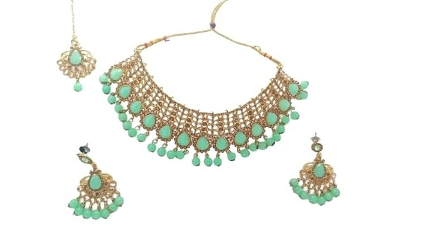 Latest Stylish Design Fancy Pearl Studded Necklace Jewellery Set with Earrings for Girls/Women