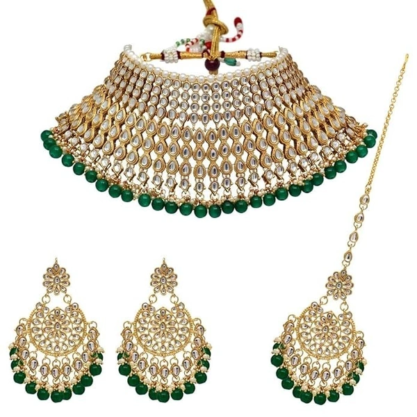 Latest Stylish Kundan Choker Wedding Party Traditional Bridal Necklace Jewellery Set for Women
