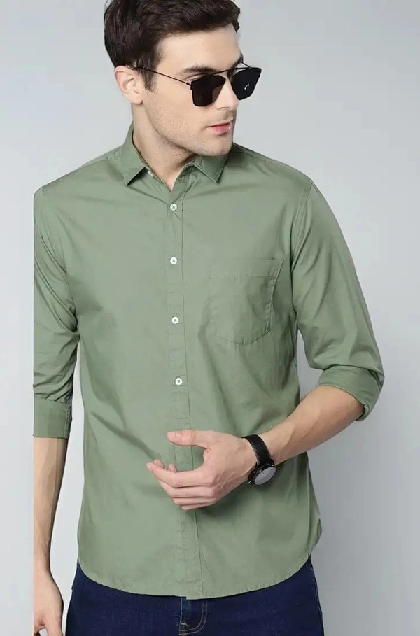 Men's Solid Slim Fit Cotton Casual Shirt with Spread Collar & Full Sleeves (Also Available in Plus Size)