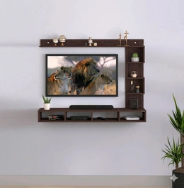 "Upgrade your living room with this sleek and functional Wall-Mounted TV Unit. Crafted from premium engineered wood, this unit is designed to hold TVs up to 43 inches perfectly. It features multiple storage compartments for your media devices and side shelves to showcase your favorite decor pieces. The rich wenge finish adds a touch of elegance to any interior. Easy to install and maintain."