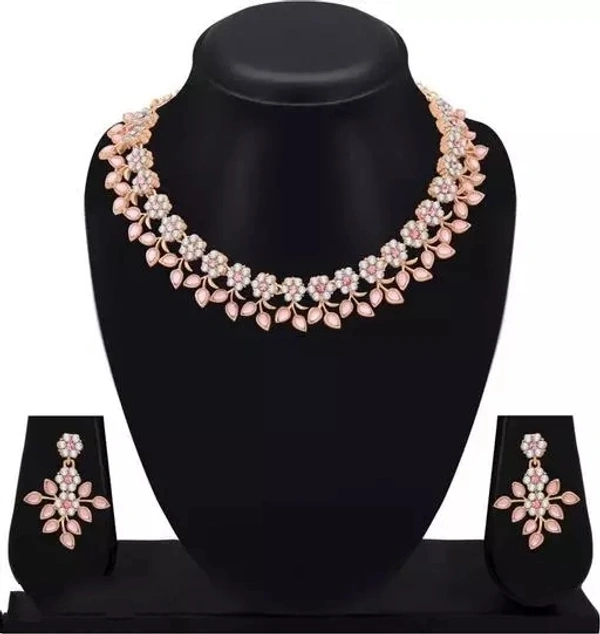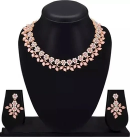 Rose Gold Plated Necklace Set With American Diamon...