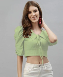 Top Fabric : Lycra, Sleeve Length : Short Sleeves, Neck : Slim Collar, Pattern : Knitted, Wash Care : Machine Wash, Casual and Party wear top for women, Country Of Origin: India