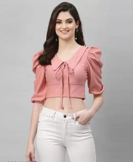 Top Fabric : Lycra, Sleeve Length : Short Sleeves, Neck : Slim Collar, Pattern : Knitted, Wash Care : Machine Wash, Casual and Party wear top for women, Country Of Origin: India
