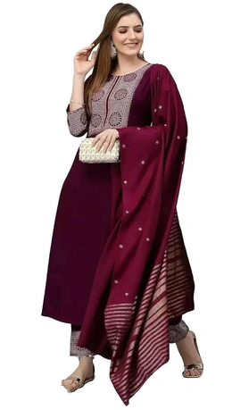 Stylish Cotton Kurta, Bottom and Dupatta Set for W...