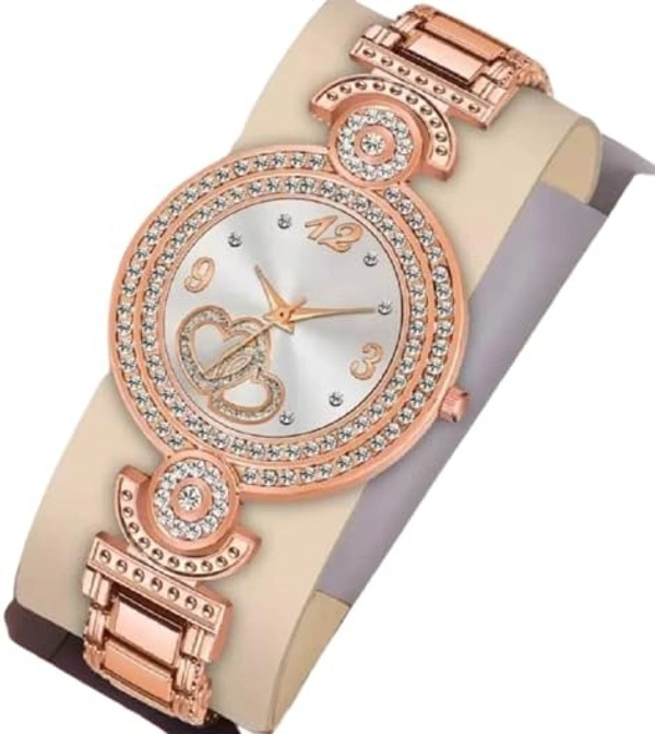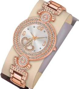 Woman's Analogue Double Heart Dial Metal Strap Watch for Women/Ladies/Girls