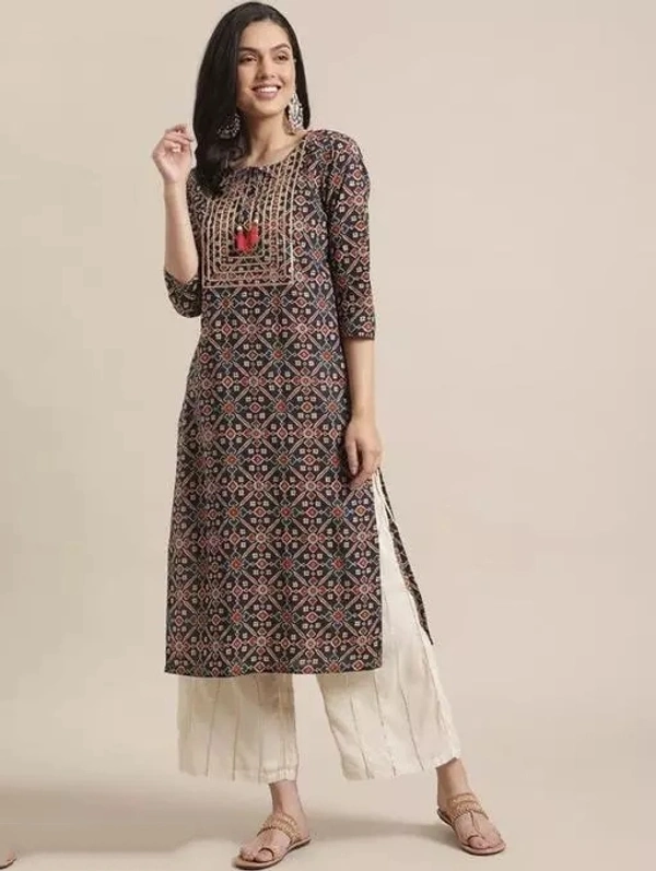 This MULTI COLOUR kruti From RAJ Enterprises. It has a ROUND Collar details that makes it visually appealing; while the Rayon Slab fabric allow optimum wearing comfort. Designed for the urban woman who loves to stand out from the rest, is the NEVI BULE Print coloured kurti Dress from RAJ Enterprises made from Rayon , this kurti has a ROUND Collar and 3/4 sleeves that give an elegant look. ROUND Collar style gives it a stylish look with the soft fabric construction be assured of comfort all day long. Double your fashion flair as you wear this Beautiful Kurti.Look classy and stylish in this piece and revel in the comfort of its Rayon fabric.