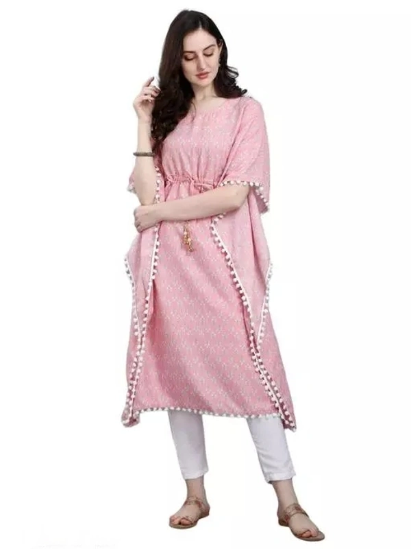 Name : Women Stylish Printed Amrican Crepe Kaftan-Kurtis With Latkan Dori (Pink)