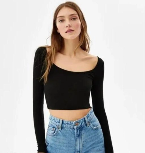 Women's Black Sqare Neck Crop Top Long Sleeve